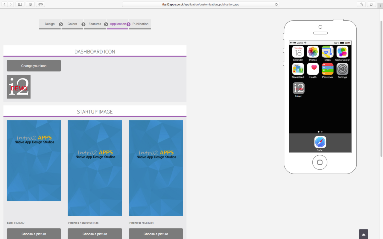 The Application screen is where you can upload an Icon for your app, as well as upload your app's Start-Up Images.