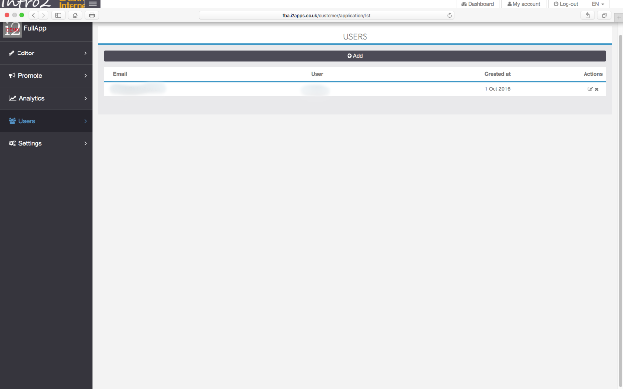 This User screen allows you to control your App Users. You can add, edit or delete Users from here.