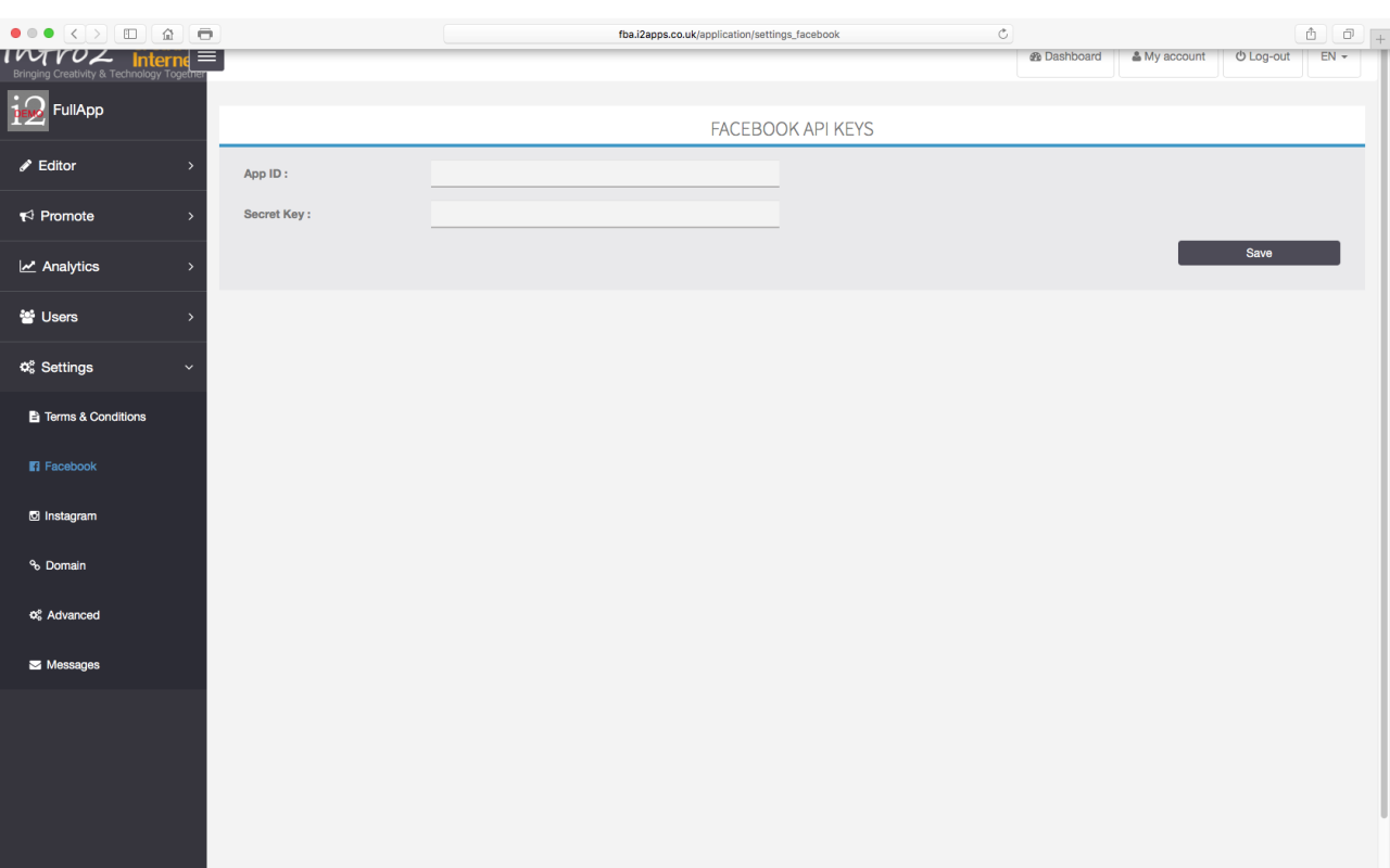 If you intend using advanced facebook features in your app, you should input your API credentials here.