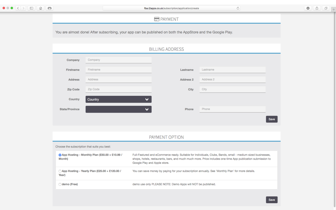 Enter your details and choose the app hosting subscription best suited to your requirements.